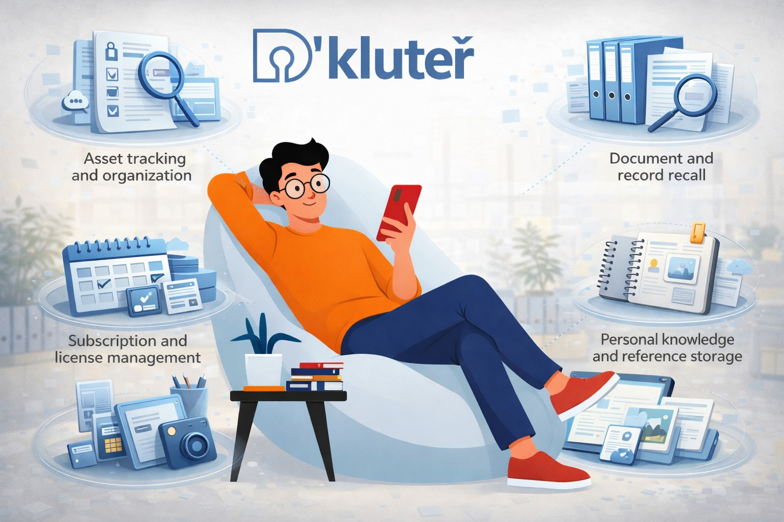 Everyone owns things, manages documents, remembers important details, and worries about losing track of what matters. D’kluteř exists to bring clarity to that everyday chaos.